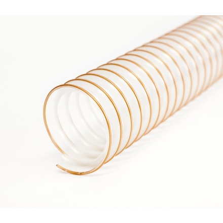 - Polyuretanová hadica, transparentná s pomedenou ocelovou špirálou.