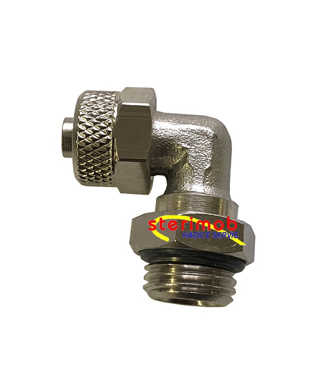 - Uhlová spojka s vonkajším závitom na PA/PE/PU/PTFE trúbku.