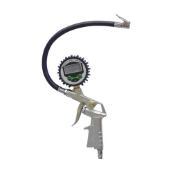 - hustenie pneumatík pomocou páčky, odvetrávanie tlačítkom na boku pištoľa